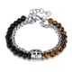1 Piece Tiger-eye Stone Double-layer Stainless Steel Men's Beaded Bracelets